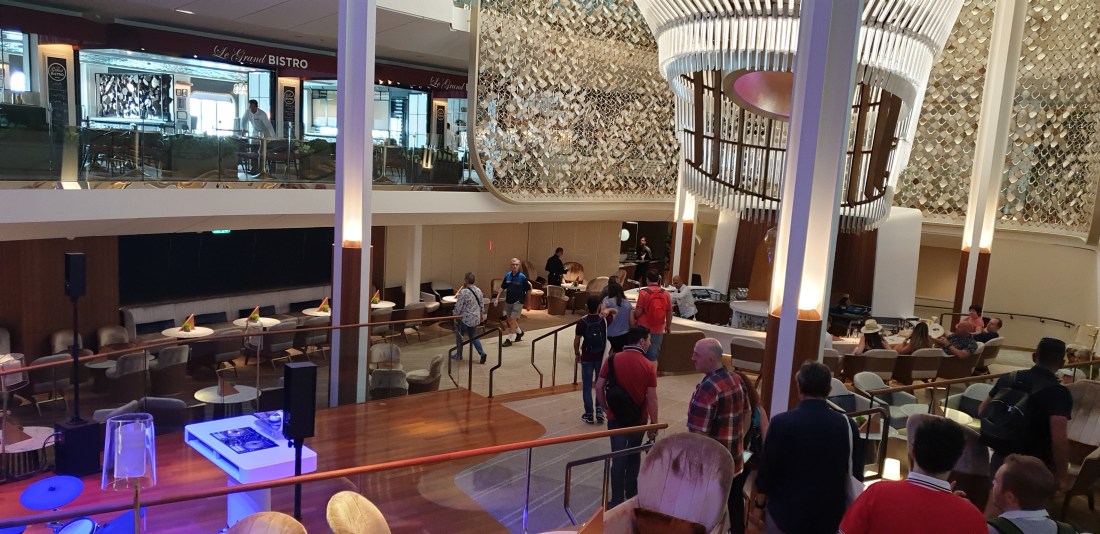Un ampio salone dove il verde, l’odore intenso delle erbe aromatiche e l’atmosfera di puro relax la fanno da padrone. Alcune sedie provengono direttamente dal MoMA (l’arte è sicuramente una peculiarità di questa nave e si percepisce ovunque, dai bagni agli ascensori, dalle statue ai lampadari). Oltre ad essere un luogo ideale per la lettura, mangiando qualcosa e respirando la natura, l’Eden regala piacevoli sorprese, dalla chef class alla performance artistica (non sveliamo oltre altrimenti l’effetto wow sparirebbe!).
