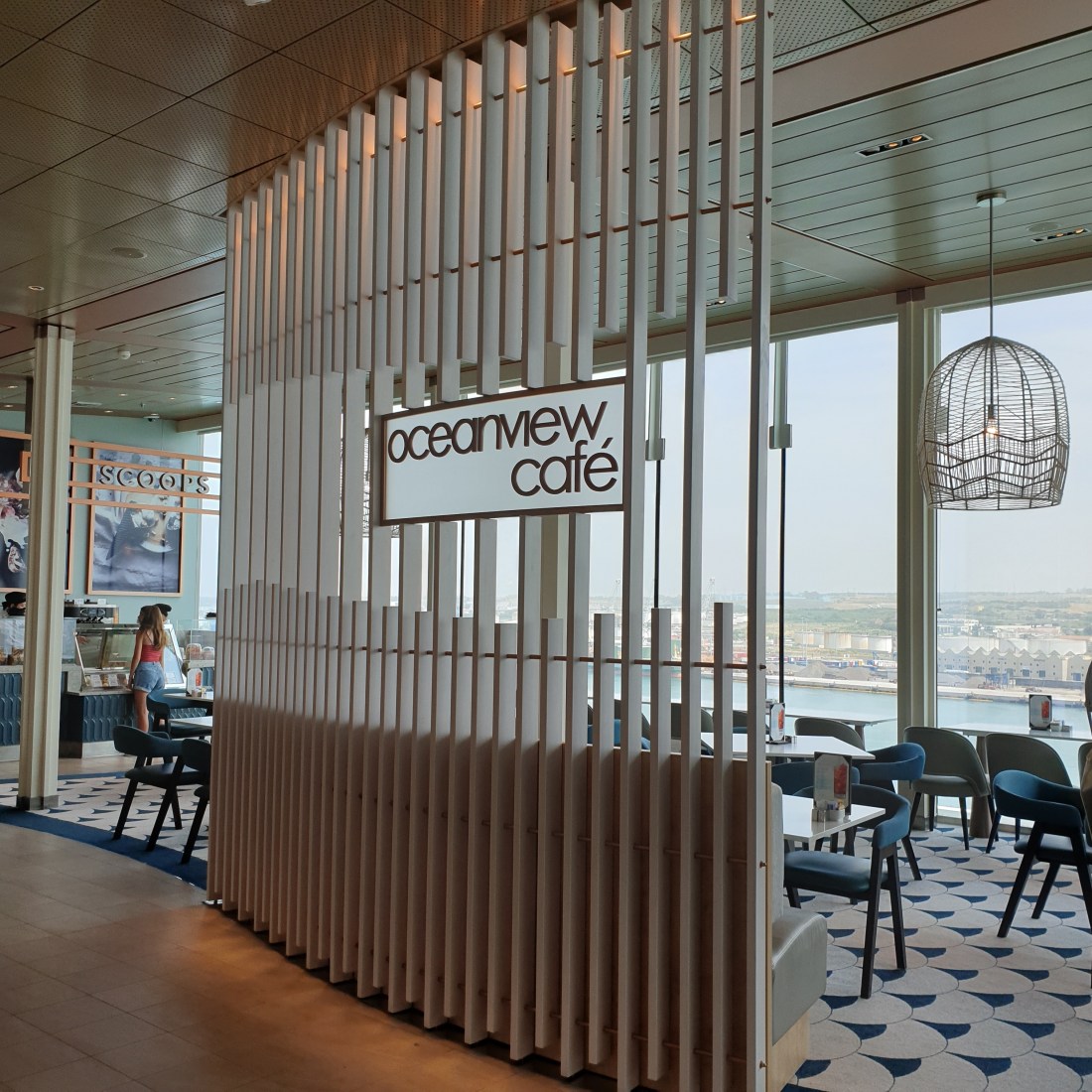 Il buffet, l’Oceanview Café, è interamente a vetrate ed arredato con colori sobri e linee raffinate. Vi sono varie isole che propongono specialità culinarie internazionali accontentando davvero tutti i gusti. Non manca l’angolo della pasta. Frutta e dolci deliziosi. Anche l’occhio vuole la sua parte e qui a bordo perfino il buffet si presenta in chiave artistica.