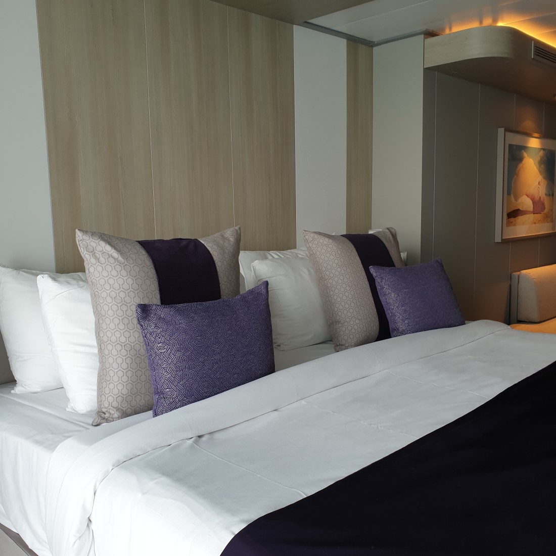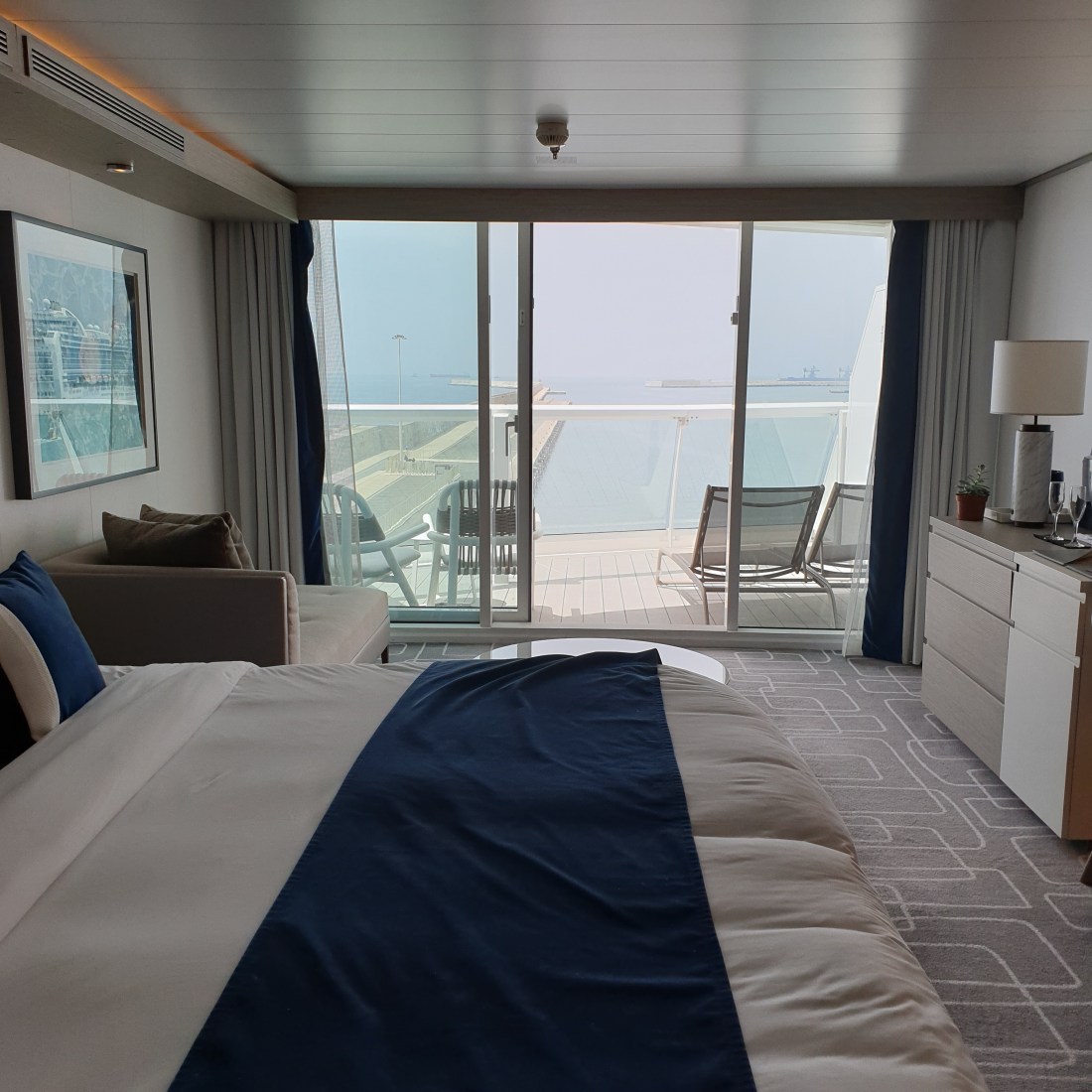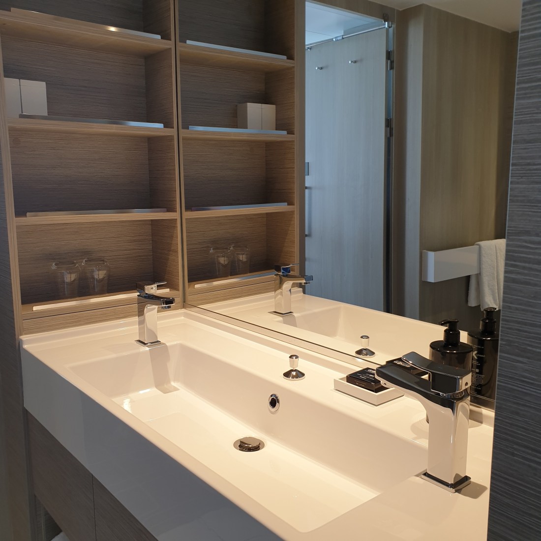 Le cabine. Ne abbiamo viste 2 tipologie. Sono semplici eppure raffinate, eleganti con sobrietà. Colori rilassanti, ampia vetrata, spazi non enormi, ma ben organizzati. Bagni belli. Cabine davvero funzionali.