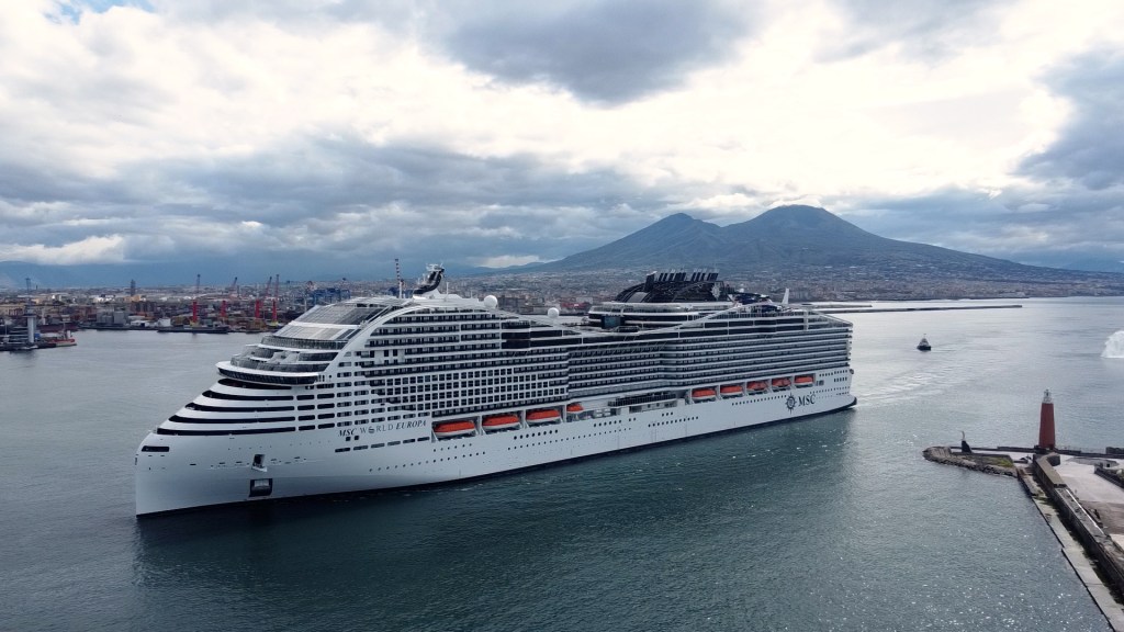 Napoli, 17 aprile 2023 – Il porto di Napoli ha accolto oggi MSC World Europa, nuova nave della flotta di MSC Crociere, tra le più avanzate al mondo sotto il profilo tecnologico e ambientale, alimentata a GNL. Dotata di 22 ponti, una stazza lorda di 215.863 tonnellate, 47 metri di larghezza, 40.000 mq di spazio pubblico e 2.626 cabine, MSC World Europa è tra le navi da crociera più grandi al mondo e in assoluto la più grande alimentata a GNL.