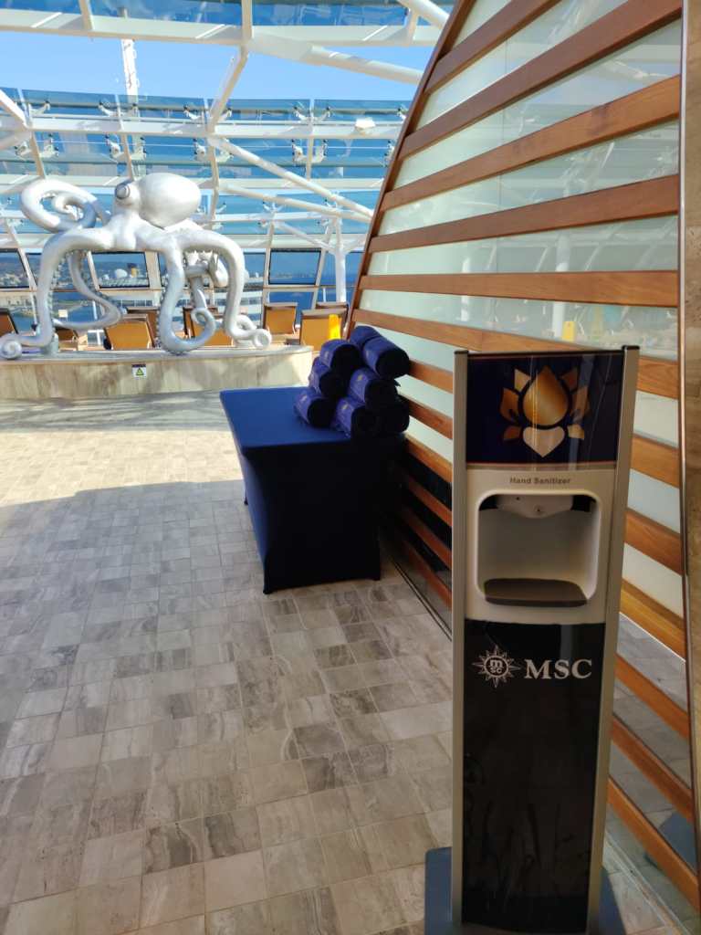 Novità assoluta per quel tempo era stata l’area vip chiamata “MSC Yacht Club”. Come storico navale mi sembrava un piccolo ritorno al passato con la creazione nella nave di una specie di prima classe un po’ come nei vecchi ocean-liners; però dopo averla scoperta ho notato che era perfettamente integrata con il resto degli spazi pubblici e non dava la sensazione ai passeggeri “comuni” di trovarsi esclusi da un’area essenziale della nave.