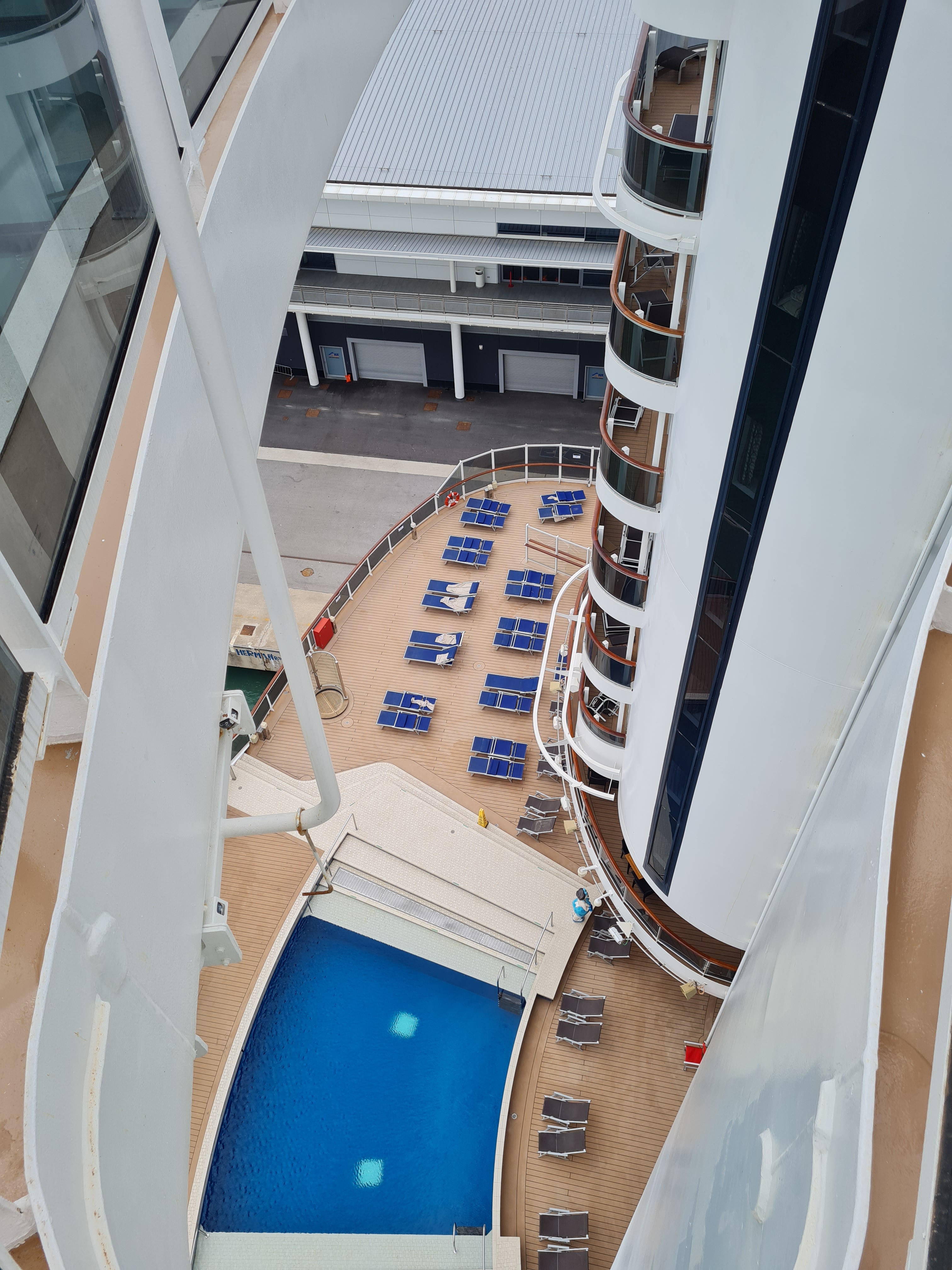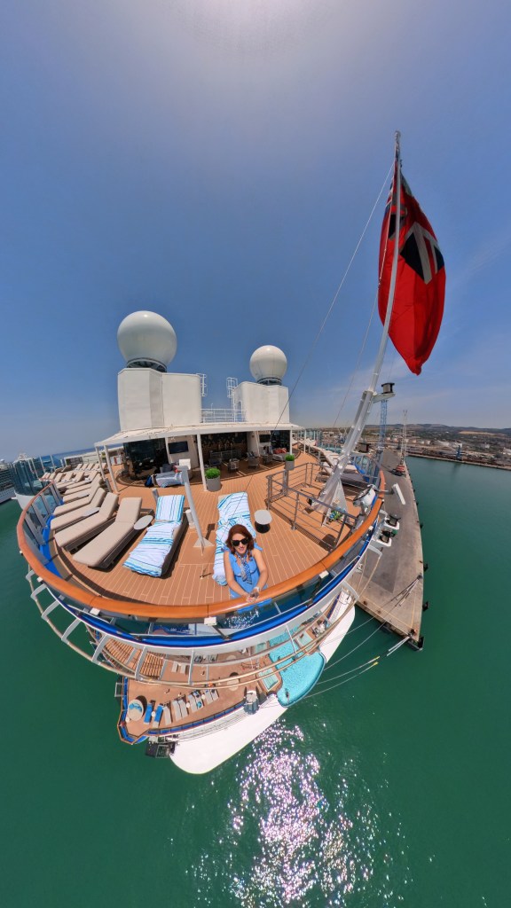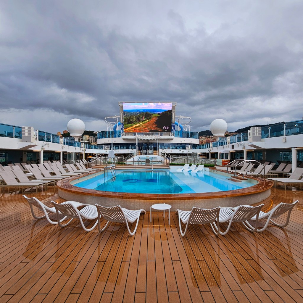 La linea esterna della nave è molto armoniosa; ciò ha permesso di limitare l’effetto scatola delle moderne navi da crociera che a mio giudizio è un problema che riguarda molti cruise-liners realizzati in questi anni.