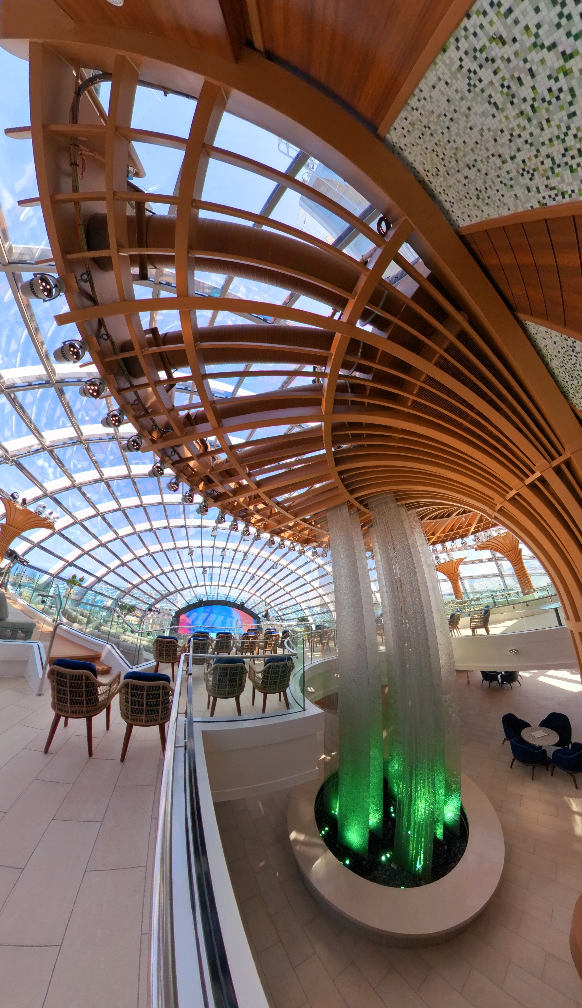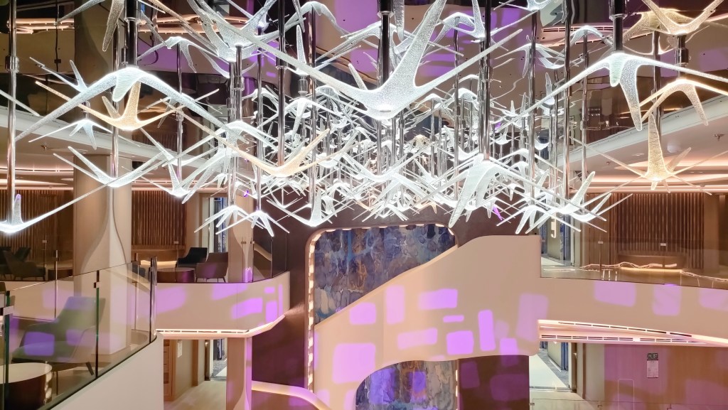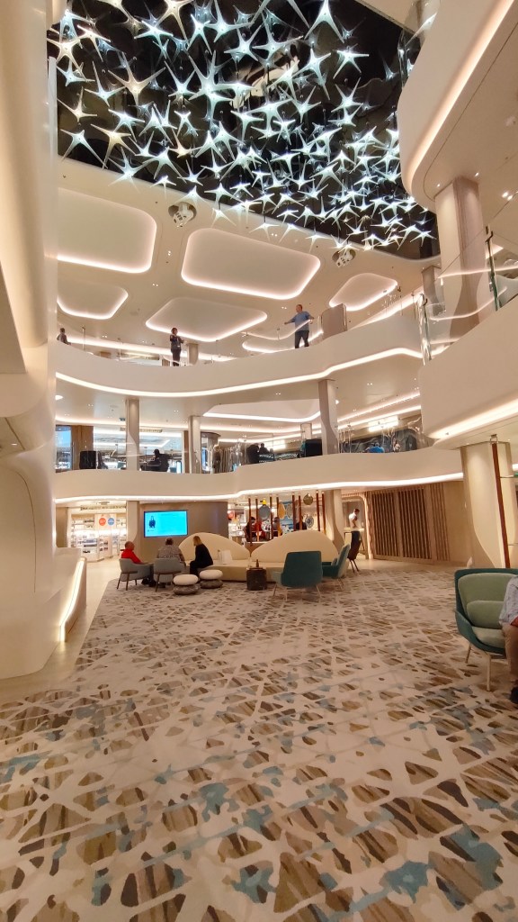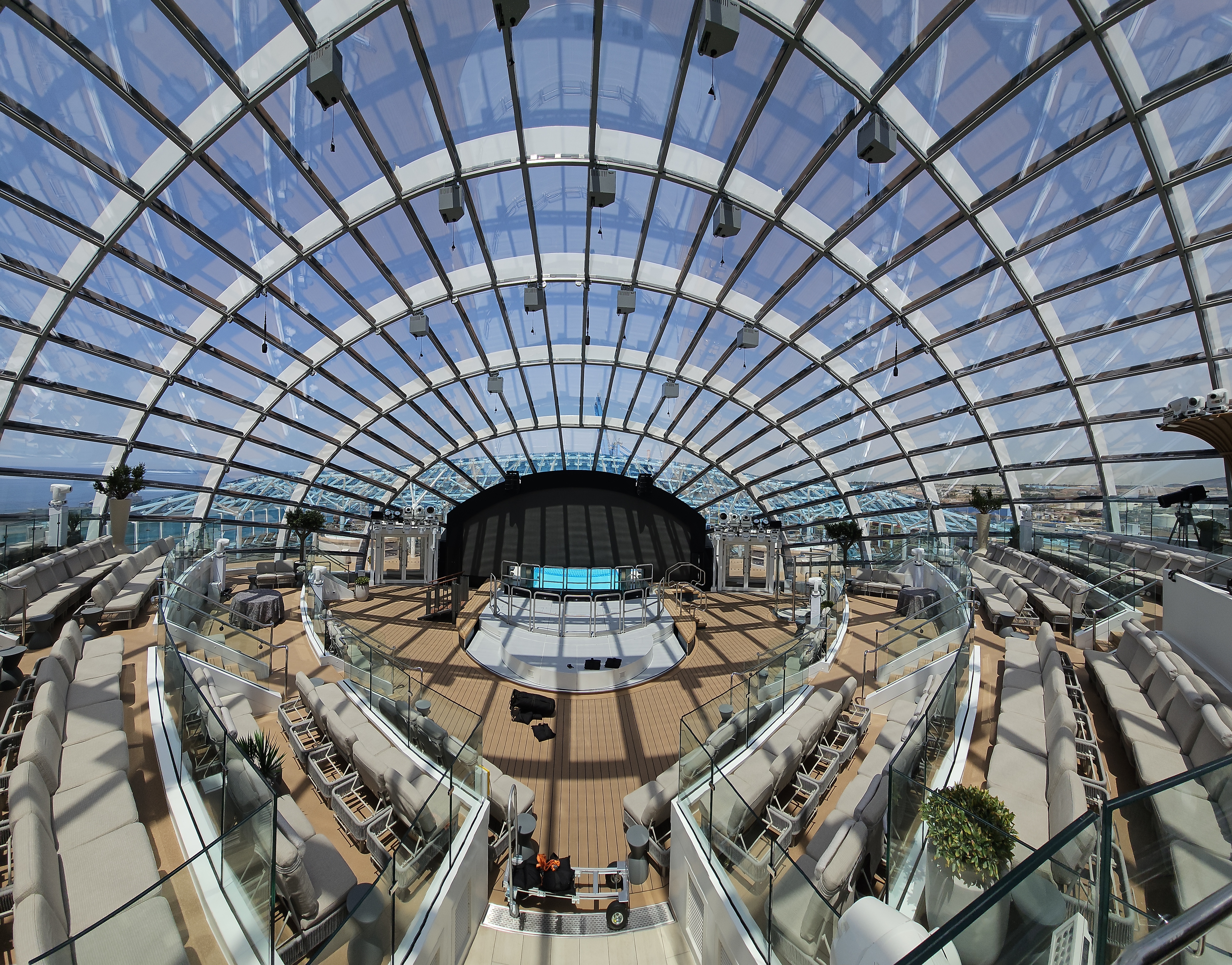 La distribuzione degli ambienti alberghieri è molto funzionale e quindi i flussi dei passeggeri sono ottimali, limitando il rischio di assembramenti eccessivi di persone. Il passeggero appena imbarcato rimane subito stupito dalla luminosità dell’atrio principale dotato di due ascensori panoramici che portano fino alla discoteca dove è possibile ballare attorniati da panorami mozzafiato.