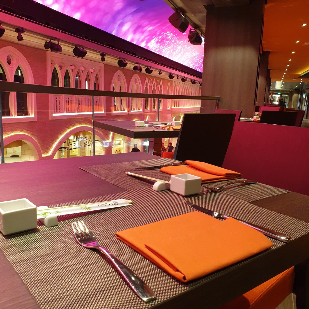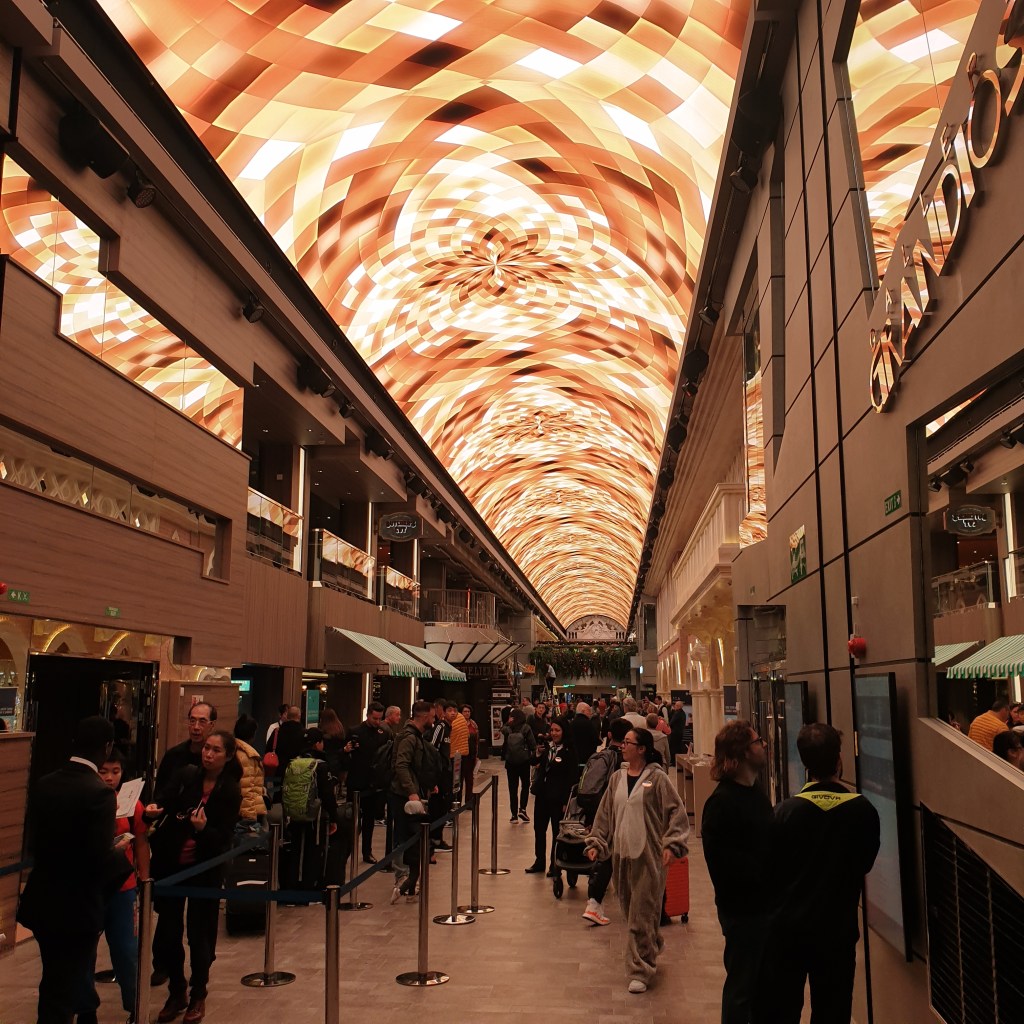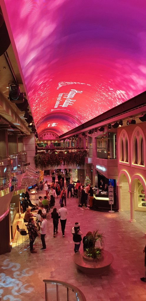 Per restare in tema di cibo, devo dire che il Marketplace Buffet mi piace proprio; certo in alcuni orari è affollato, ma tutto sommato in tempi brevi riusciamo a servirci e troviamo sempre un tavolo libero. La varietà è tanta, la proposta va dal vegan, all’asiatico, all’internazionale, all’italiano. C’è di tutto e in quantità, 20 ore su 24. Personalmente ci piace più la qualità del cibo al buffet che al ristorante. E poi la pizza… davvero buona, leggera, gustosa. Il servizio al tavolo per le bevande è veloce, i ragazzi lavorano incessantemente e sono efficienti, forse mi piacerebbe scambiare qualche chiacchiera in più con loro, ma li vedo davvero impegnati.