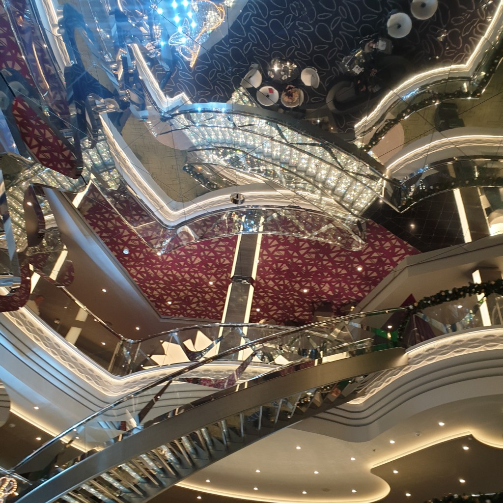 Nota stonata della crociera è l’impossibilità di assistere alle performances del Cirque du Soleil… Decidiamo di regalarci le ultime due sere “cena con spettacolo” nell’elegantissimo Carousel Lounge, lo spazio dedicato esclusivamente all’esibizione dei celebri artisti. E invece entrambe le sere il mare è esageratamente mosso ed il vento soffia a più di 35 nodi: gli spettacoli, Exentricks e Cosmos, vengono cancellati per garantire l’incolumità dei performers. Condivisibile al 100%, però che peccato… l’ultima sera il mare è talmente mosso che si fatica a stare in piedi, ma posso confermare che la cabina a centro nave è la migliore in questi casi!