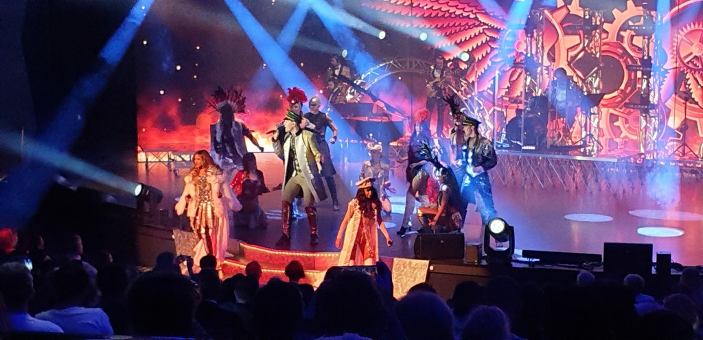l’intrattenimento dal vivo a bordo della nave, con un programma adattato alle nuove esigenze e la capacità del teatro ridotta al fine di garantire il distanziamento fisico in modo che tutti possiamo scegliere e godere di una grande varietà di spettacoli pluri-premiati.