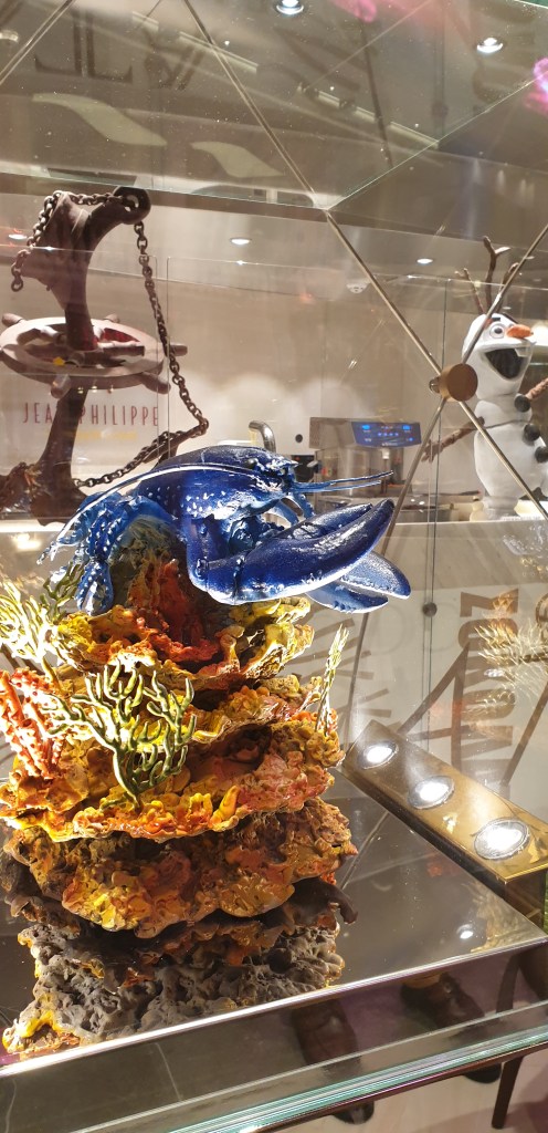 Il pomeriggio di navigazione ed il penultimo prima di sbarcare, ci lasciamo tentare da Jean Philippe: Diego – in pausa dall’intensa attività al miniclub – propone gelato (una porzioneè in realtà enorme! noi lo abbiamo mangiato in due chiedendo di dividerlo in due coppette); pistacchio e cioccolato sono divini… La seconda volta però proviamo le crepes nutella e fragole… che ve lo dico a fare… vale la pena! Finita la sosta golosa, ci perdiamo tra le mille creazioni di cioccolato dei chocolatiers di bordo; vederli all’opera è estasiante… piccole e grandi opere d’arte, alcune solo da esposizione altre disponibili per l’acquisto, ce n’è per tutte le tasche, ed è sicuramente un souvenir ma anche un regalo originale e gradito. Sarà il profumo inebriante del cioccolato, i colori utilizzati per l’arredo (Diego è convinto che anche tavoli e poltroncine siano di cioccolato!) e gli oblò che lasciano intravedere il mare blu, ma qui mi sento felice.